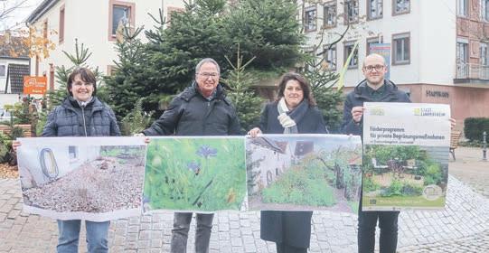 EsgehtumjedekleineFlächein derInnenstadt,diebegrüntwird–nichtnuraufgrunddesLebensraumesfürInsektenimFokus,sondern auchmitBlickaufdenKlimawandel verbundenmitderLuftfeuchtigkeit undbessererLuftinLampertheim sowiemitBlickaufStarkregenereignisse.Hierhilftjedegrüne Fläche,Regenwasserzurückzuhalten.GaragenundCarportssind hierfürebensogeeignetwieGärten, umpflegeleichteundmöglichst vieleMaßnahmenumzusetzen. Dennwirkönnenmitdiesem ProgrammindennächstenJahren nochvieleschönegrüneMosaiksteineschaffen”,betonteMartina Fendt,Projektleiterinbeider ProjektStadt.Vorschlägewerden gernevonMartinaWendtgemeinsammitdenGrundstückseigentümernmitentwickelt,gleichzeitig stehtdieseauchbeimAusfüllen vonFormularengernezurSeite. DieBeratungistdabeijederzeit kostenfreiundunverbindlich. FörderfähigsindPlanungs-, Material-undBaukosten.Fürdie bewilligtenMaßnahmenisteine ZuwendunginHöhevon60Prozent derbelegbarenKostenfürHöfe undVorgärtenund50Prozentder förderfähigenKostenfürDachundFassadenbegrünungenvorgesehen.