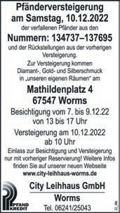 Freitag,2.Dezember: ElektroHerbel,Kriegerstraße13,68307Mannheim, Gewinn-Nummern350,570;Stadtapotheke,Kaiserstraße18,Gewinn-Nummern 157,279,400.