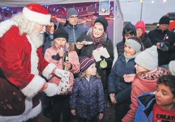 Nikolausmarktbewies,dasvorweihnachtlicheLeuchtenmussnicht vonvielenLichterkettenkommen, dieBesucherbringenmitihrer gutenLaunedasLeuchteninden Augenmit.Weithinerklangenam SamstagnachmittagdieweihnachtlichenMelodienderRohrheimer BlasmusikunterderLeitungvon ChristianHenzel.Amzentralen PlatzinderMittedesNikolausmarktesverweiltenzahlreiche ZuschaueringroßerRunde,die denMusikernreichlichApplaus spendeten.AufderlangenTitelliste standen„Wewishyouamerry Christmas“und„HealtheWorld“ undauchdiebekanntenLieder „TochterZion“und„Fröhliche Weihnachtüberall“.Aberwobleibt derNikolaus?EineFrage,die angesichtsdesdichtenTreibens zwischendenBudenundStänden nichtleichtzubeantwortenwar. TatsächlichwarermitJutesackund WagenvomBahnhofsvorplatzher gekommen.