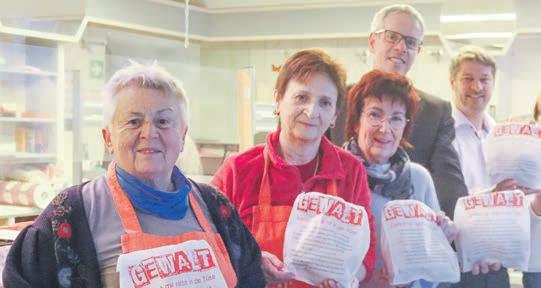 BÜRSTADT–DieBrötchentütenaktion„Gewaltkommtmir nichtindieTüte”fandnachdem AuftaktbeiderTafelinLampertheimamDienstagbeiderTafel BürstadtihreFortsetzung:BürgermeisterinBarbaraSchaderund LandratChristianEngelhardt stattetendemTafel-TeamgemeinsammitderGleichstellungsbeauftragtenderStädteBürstadt, GerasimoulaGrigoraki,undder Frauen-undGleichstellungsbeauftragtendesKreises,Nicole Schmitt,einenBesuchabund informiertenüberdieseswichtige Thema.DenndieGewaltgegen FrauenundauchMädchennimmt leidernichtab–umsowichtiger istes,diesenichtzutabuisieren sonderninvielfältigerArtund Weisedaraufaufmerksamzu