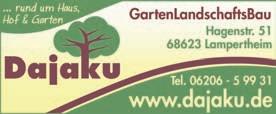WATTENHEIM–DasTeamvomProjekt„SchönerPfarrgarten(PSPG)" existiertüber14Jahreundkümmert sichregelmäßigundehrenamtlich umdieErhaltung,dasVerschönern unddiePflegedesGartens. ErwurdeauchdurchvieleSponsoren unterstützt,dieGeld,Zeit,Blumen, Getränke,Brötchen,Bänke,Stelen, „BaumpflegederbesonderenArt" oderauchHeftefürden„Gartenbücherschrank”spendeten.„Ihnenallen,denehrenamtlichenHelferinnenundHelfernsowieSponsoren seiherzlichgedankt”,sodasTeam desPSPG.Dieseristübrigensüber dieSeitederWattenheimerKirche auchimInternetvertreten.zg
