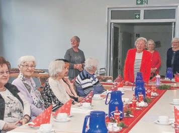 AuchAngehörigemitihren Kindernwarengekommenund hörtenzu.Liederheftewarenschon zumMitsingenausgeteilt,denn derChorunterderLeitungvon UrsulaLitzingerhatteeinProgramm mitsiebenweihnachtlichen Mitsingstückenundsechseigenen Liedvorträgenvorbereitet,dazu zweiGedichte,„DieWeihnachtsmaus“vonJamesKrüssund„Vom Christkind“vonAnnaRitter.Ursula LitzingerstelltedenChorvorund nahmdenGesprächsfadenmit denBewohnernauf,diegerneauf ihreFrageneingingen.