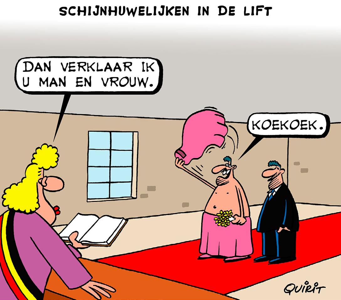 “Mijn excuses,” zegt Janssens geschrokken, “maar was er dan niemand die met u mee wilde? Een goede vriend, kennis of familielid?” Waarop de man antwoordt: “Nee helaas, die zijn vandaag allemaal naar de begrafenis.”