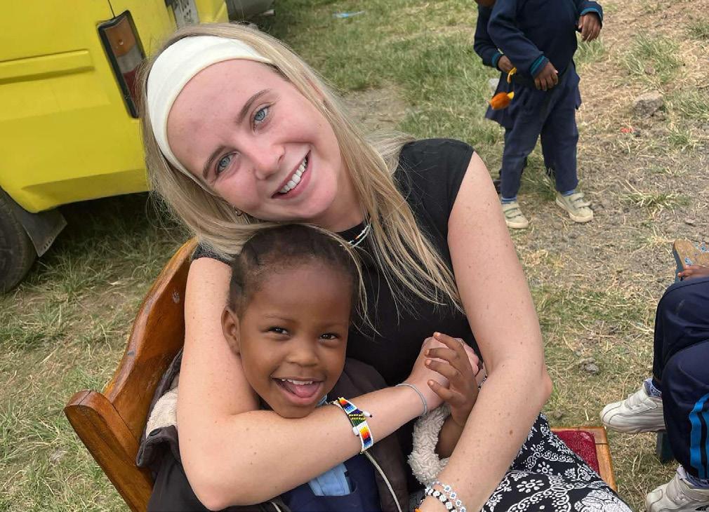 Dáil candidate Nadaline Webster and Cara with a cardboard cut-out of Simon Harris