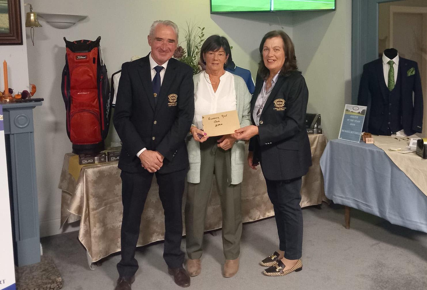 Mary O’Donnell of Cahir Day Cahir Centre recives donation from Arthur O’Donnell on behalf of Cahir Park Golf Club Seniors