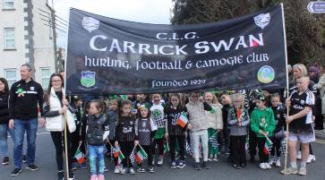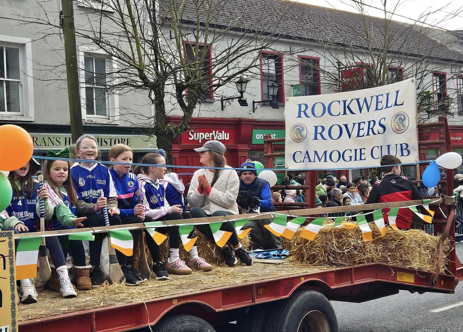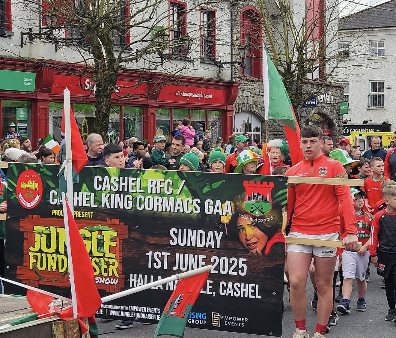 Providing colour in any parade is key and the sporting groups always provide colour in every Cashel march, along with silverware, and both boys and girls clubs were well represented on the Cashel streets. Also important for the parade, is the participation of groups from the surrounding areas, and hurling, football and camogie teams from Boherlahan, New Inn and Rosegreen joined their Cashel counterparts. So too did both Cashel Town Schoolboys and Girls soccer club and Cashel’s rugby minis, as the parade wound its way across the Green and down to the viewing stand on Main Street.