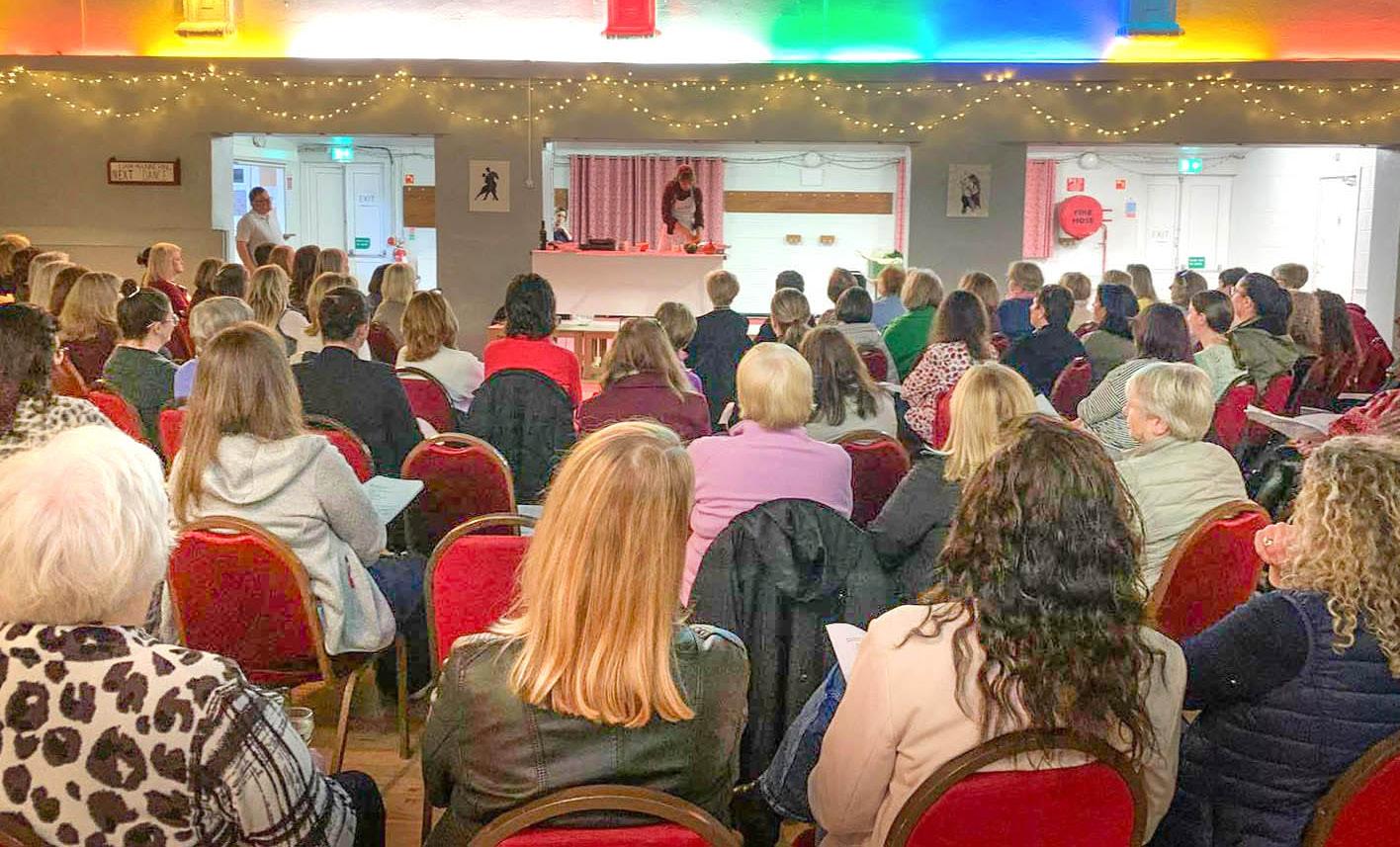 We had a fantastic turnout at our Pre Christmas Cookery/Flower Demonstration on Thursday, November 6, in Fethard Ballroom. The canapés which very kindly sponsored by Sadler’s Fethard were delicious and went down a treat along with a glass (or 2) of wine. The very talented Amy Pollard kept everyone entertained singing and playing the guitar creating a lovely atmosphere before the cookery demo began. Sinead Delahunty opened the night with preparing four fantastic dishes, samples for everyone to taste, which went down a treat. Sinead was joined by Cashel Farmhouse Cheese, who shared