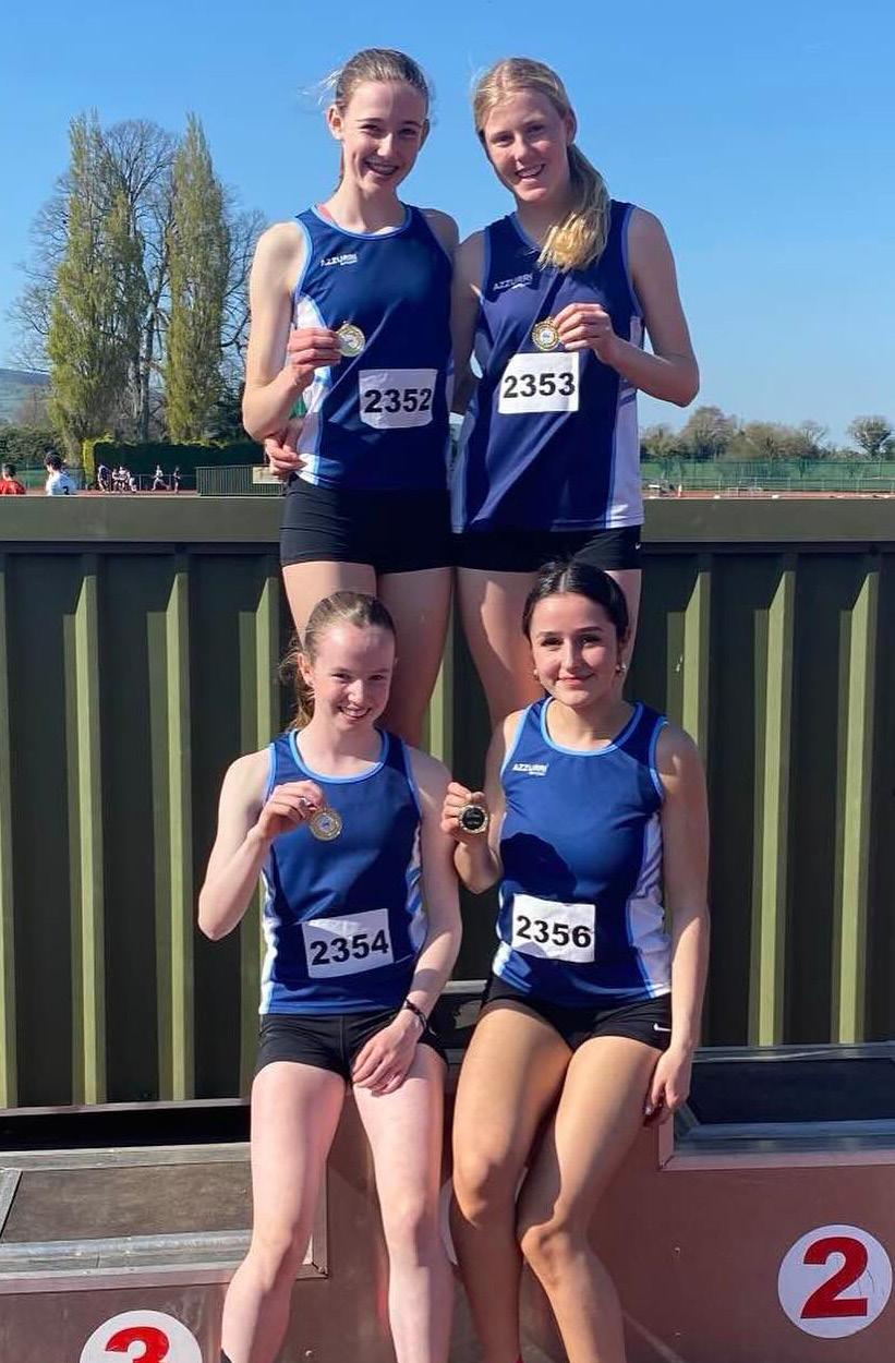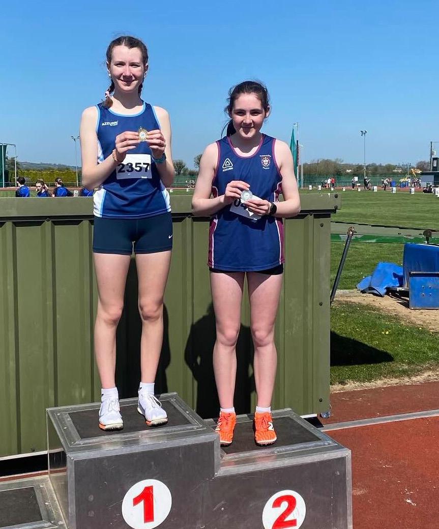 The intermediates Tianna, Eleanor, Rachel and Doireann brought home gold in the 100m relay and Rachel finished in fourth position in the 100m final. Tianna jumped 4m15 in her first ever long jump. Doireann jumped into silver medal position in the high jump. Eleanor ran in a time of just over five minutes to win Intermediate gold in the 1500m and Alana finished in the exact same time to win gold in the Senior 1500m. Maedbh, Annie, Sarah, Aoibhe, Caoimhe, Ella and Bibi ran well in the middle-distance races of 800m and 1500m.