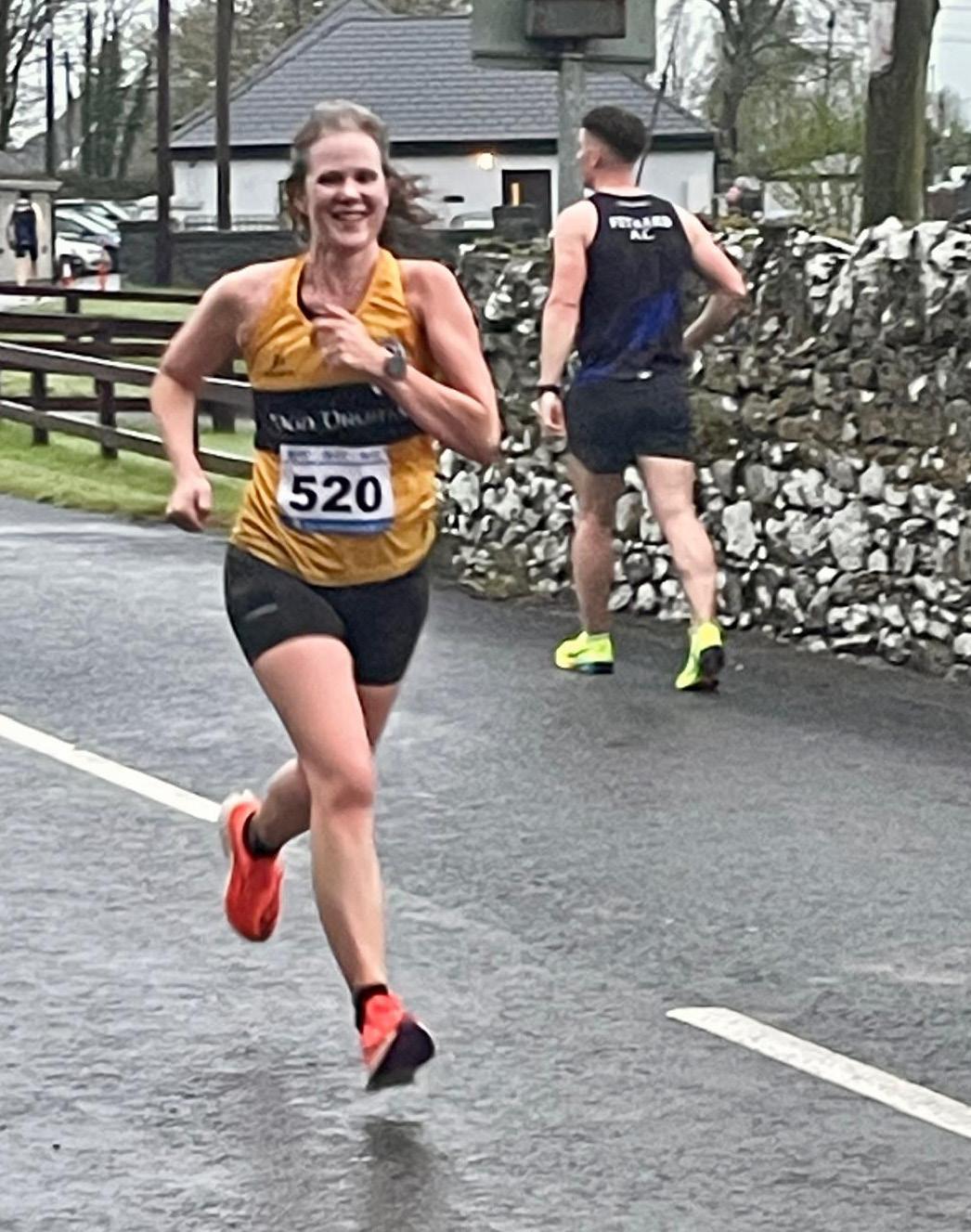 A smiling Emily Leahy, Dundrum AC 1st lady O40 at Ballyneale 5k on Friday 18th