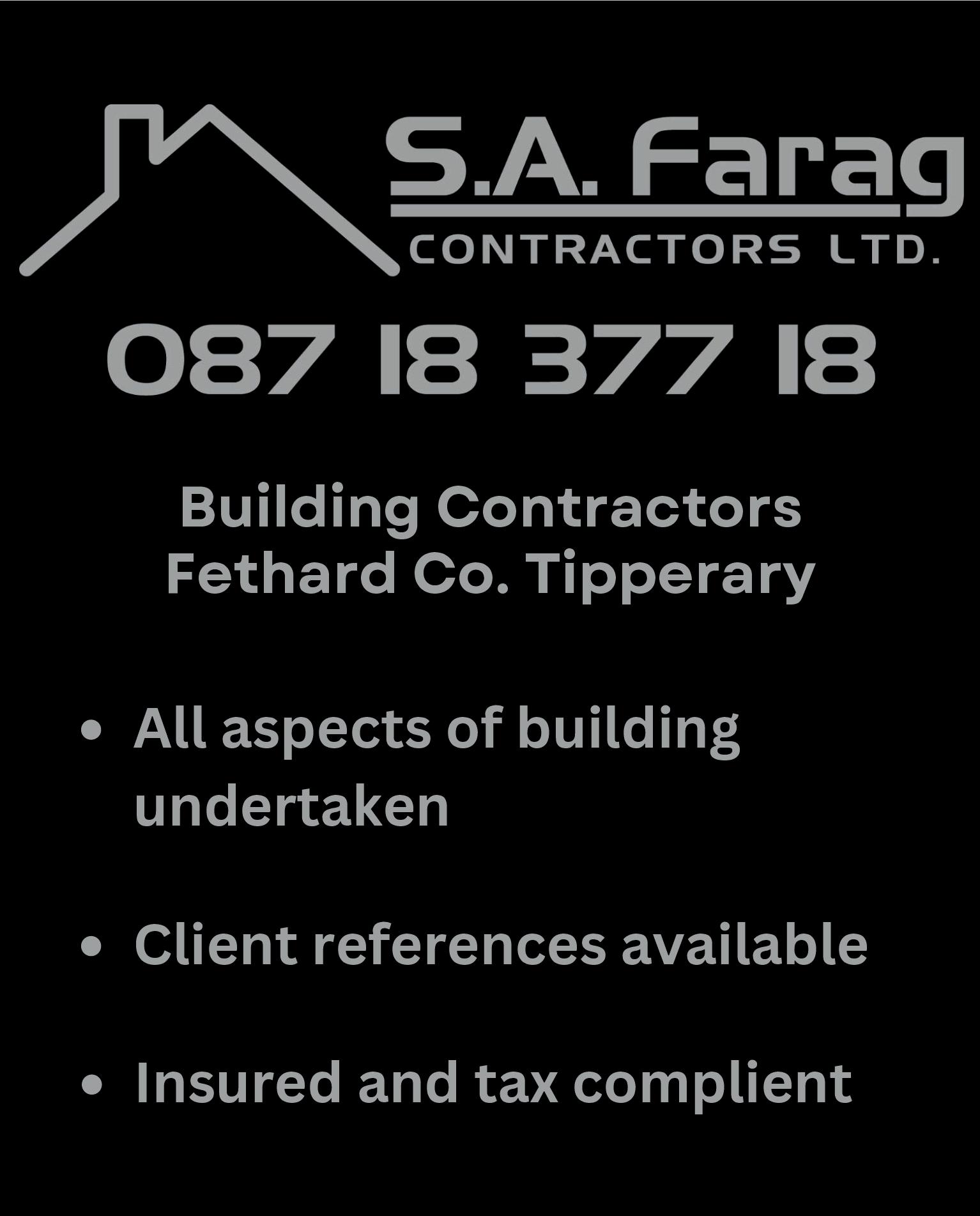 This is the last piece of STAG hoarding remaining from around the new St. Anthony’s Unit at Glenconnor, Clonmel, size 24ft x 8ft (six panels). It is FREE to take away. If interested contact the organiser STAG at 086-8096823.