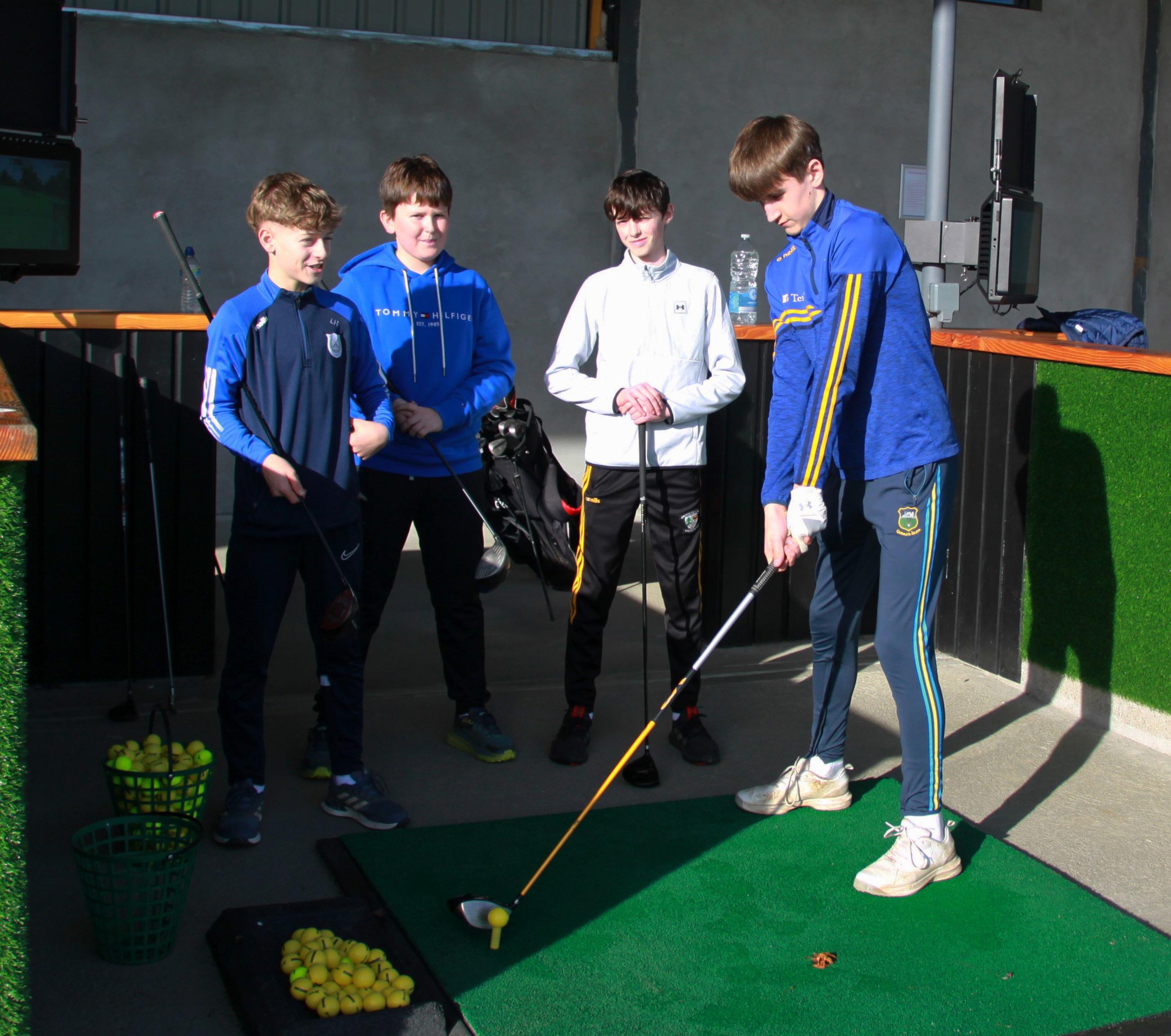 Some of our junior golfers at County Tipperary Golf & Country Club playing a match on the Trackman Driving Range on Sunday last. From left to right: Luke Hanrahan, Evan Wade, Conor Hickey and Cian Buckley.
