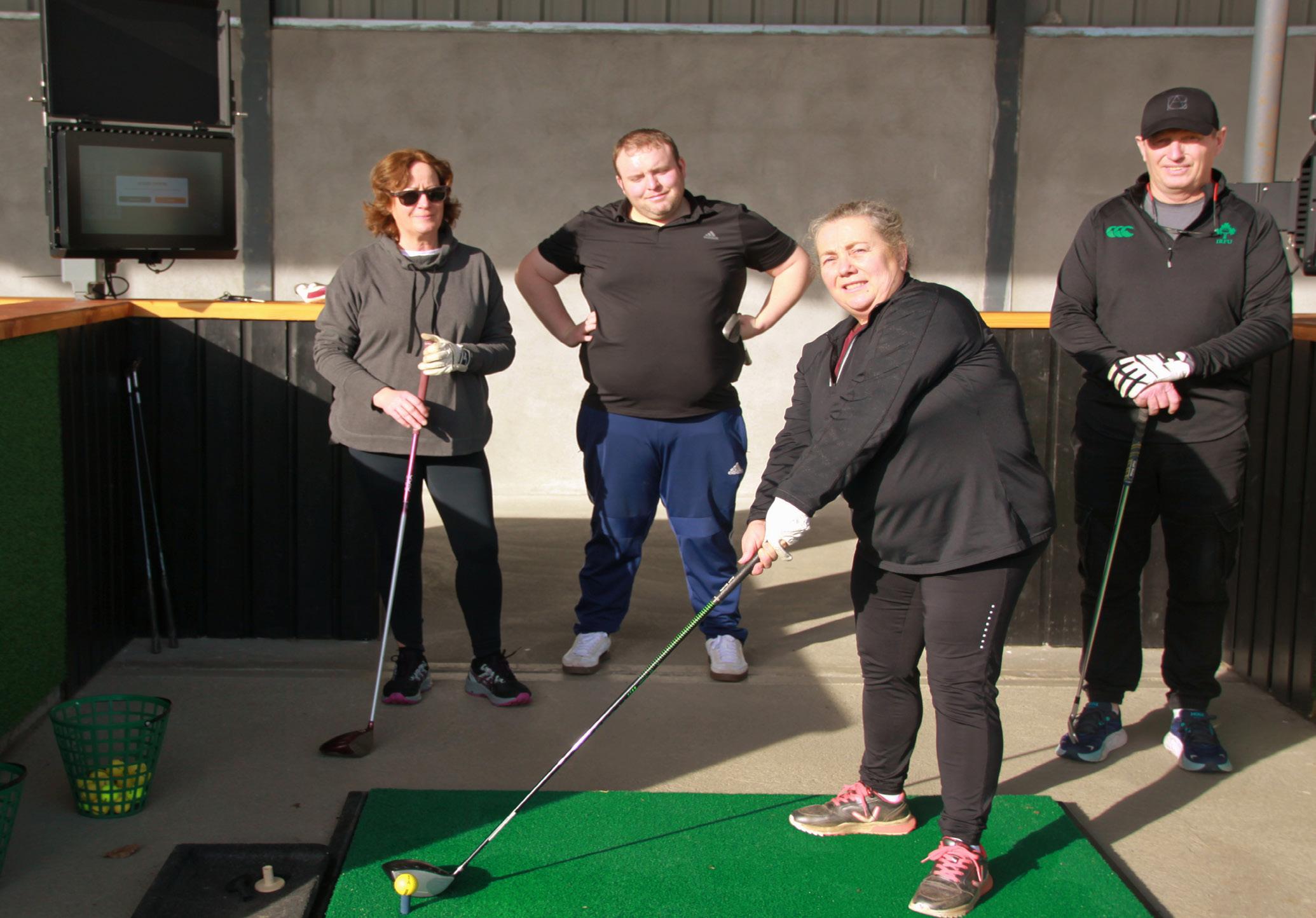 County Tipperary Golf & Country Club members playing a match on the Trackman Driving Range at Dundrum House Golf & Leisure Centre on Sunday last were from left to right: Carmel Lowth, David Ryan, Lady Captain Marie Graves and Pat Keating.