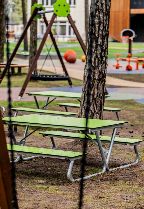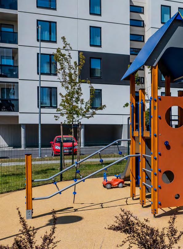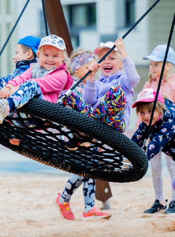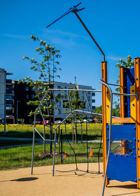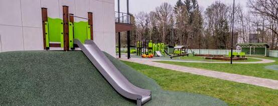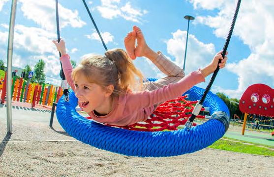 Wir reduzieren Abfall und setzen auf Kreislaufwirtschaft. Bis 2028 wollen wir 90 % unseres Abfalls dem Recycling zuführen und die Abfallmenge um 25 % senken. Zudem bieten wir die Wiederaufbereitung gebrauchter Spielgeräte an. Unsere Fallschutzböden bestehen u. a. aus recycelten Tennisbällen, Verpackungsmaterial aus geschreddertem Papier und Karton.