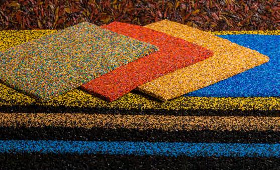 Die farbigen Granulate ermöglichen kreative und verspielte Oberflächen – ideal für Spielplätze, Laufbahnen und Freiflächen. Auch 3D-Motive können eingearbeitet werden.