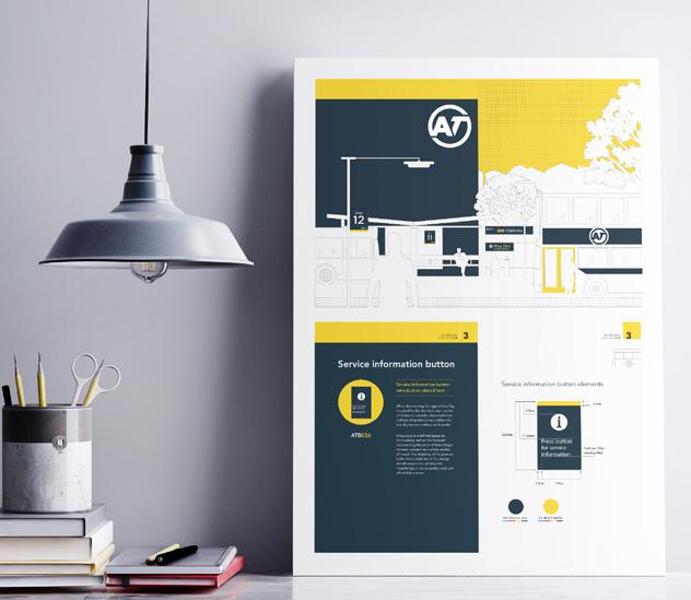 Research, design and layout information, text and graphics to produce a master brand document used for referencing brand guidelines for all new Auckland Transport wayfinding systems for rail, bus, cycle and ferry networks in the Auckland region.