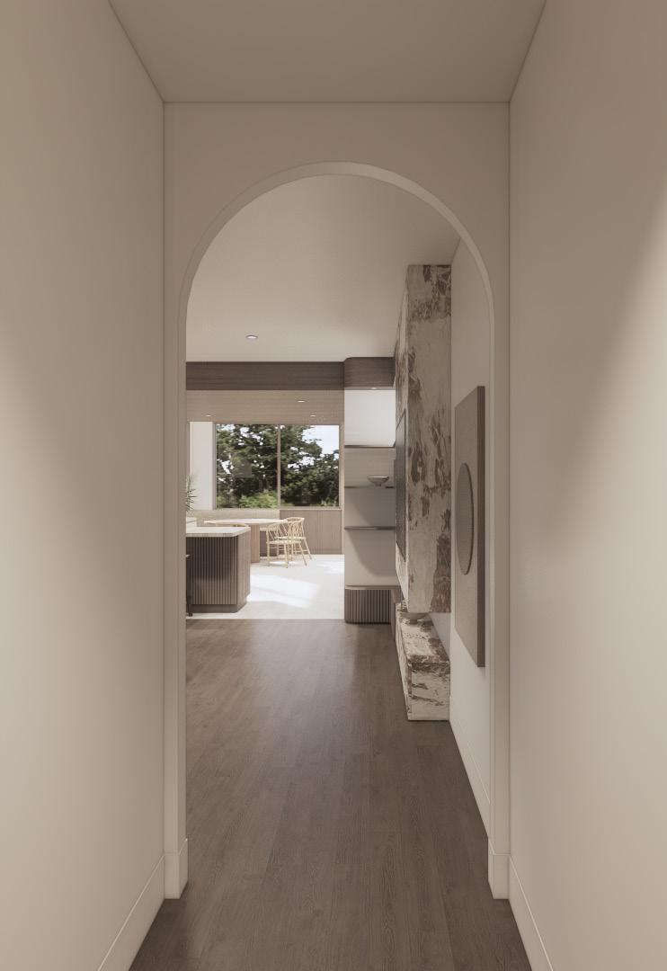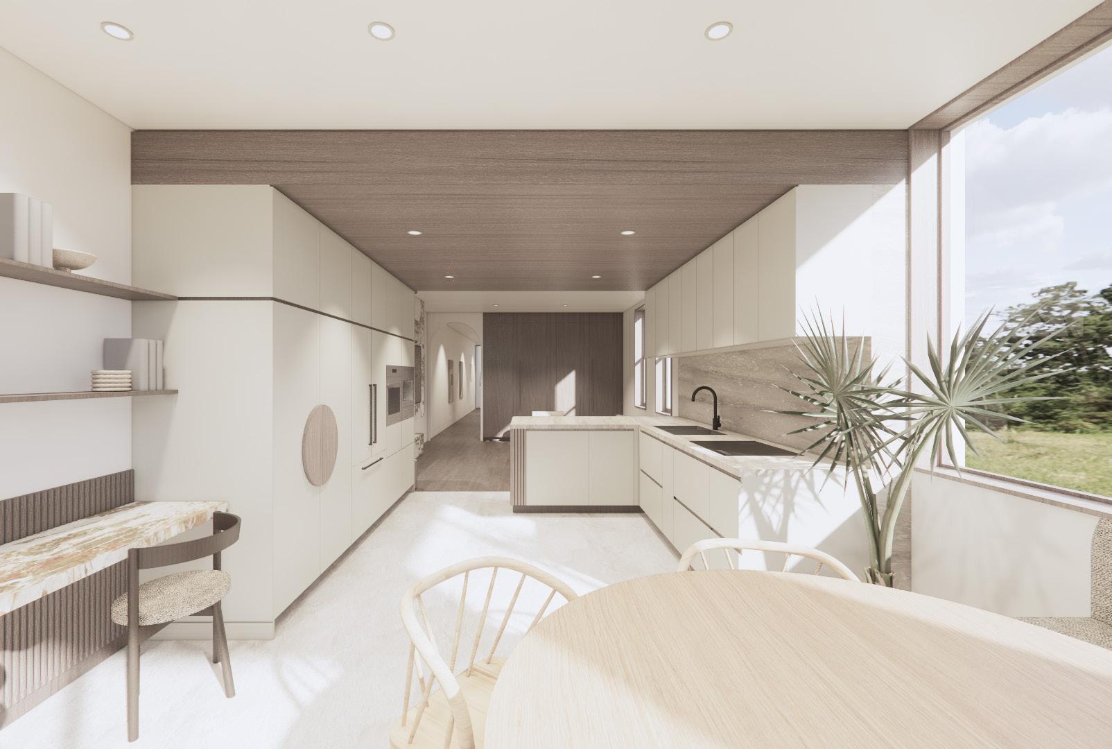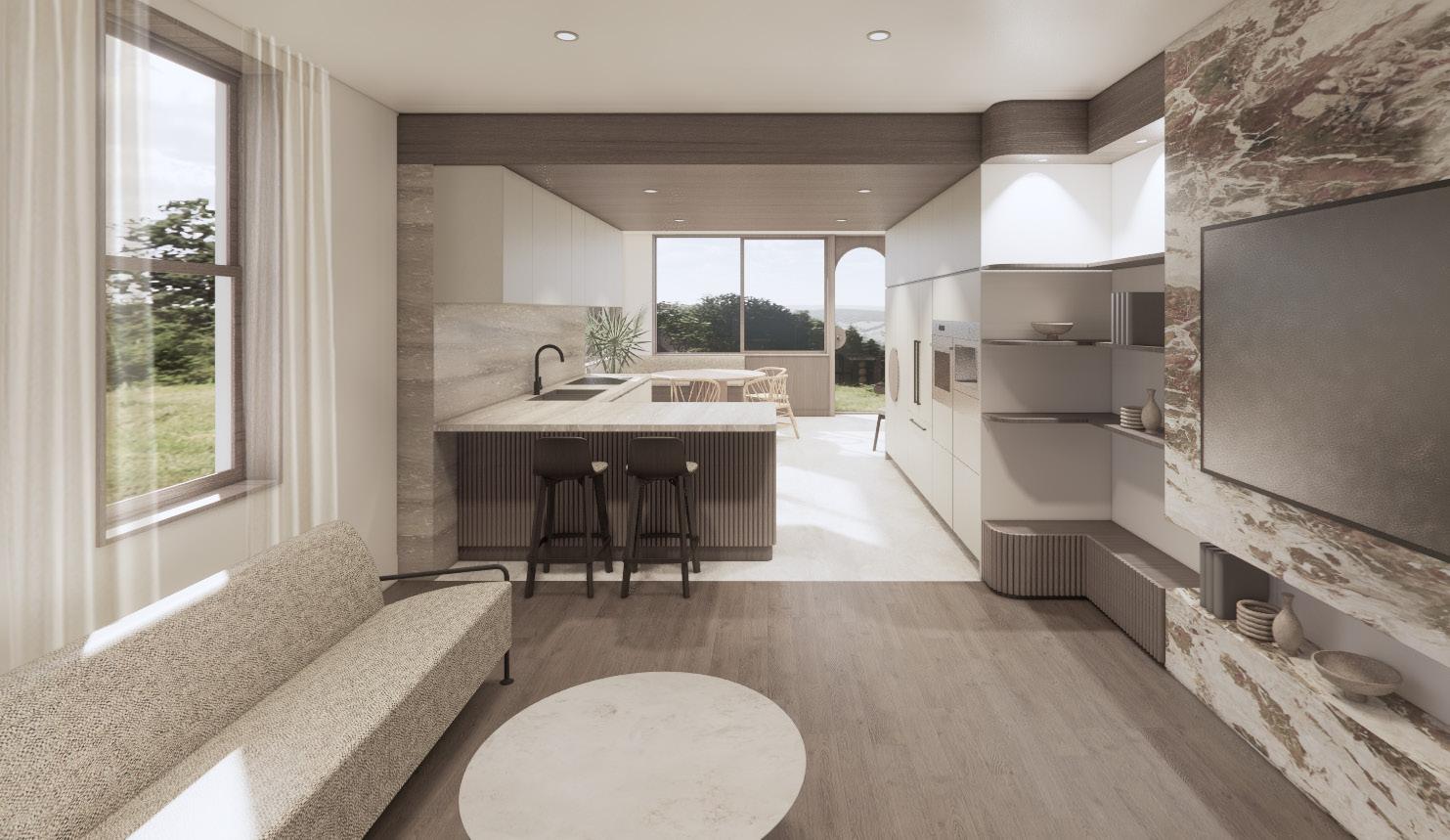The concept design features a modern, open-plan layout that maximises the use of natural light from the north. The aim is to create a stylish and functional interior that exudes a cosy atmosphere throughout the space. The materials and finishes have a soft-edged, muted colour scheme and include curated sustainable natural products. The dynamic and minimalistic design creates a timeless look ideal for a modern, uncluttered aesthetic lifestyle.