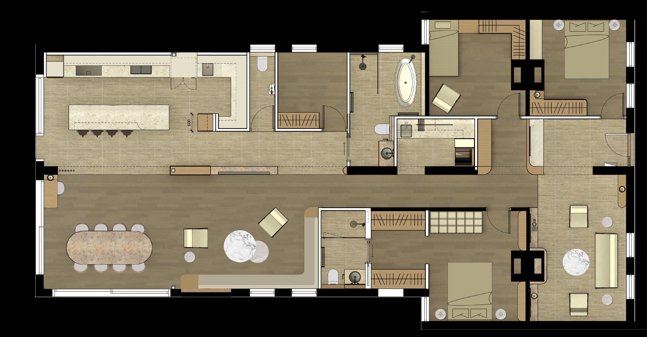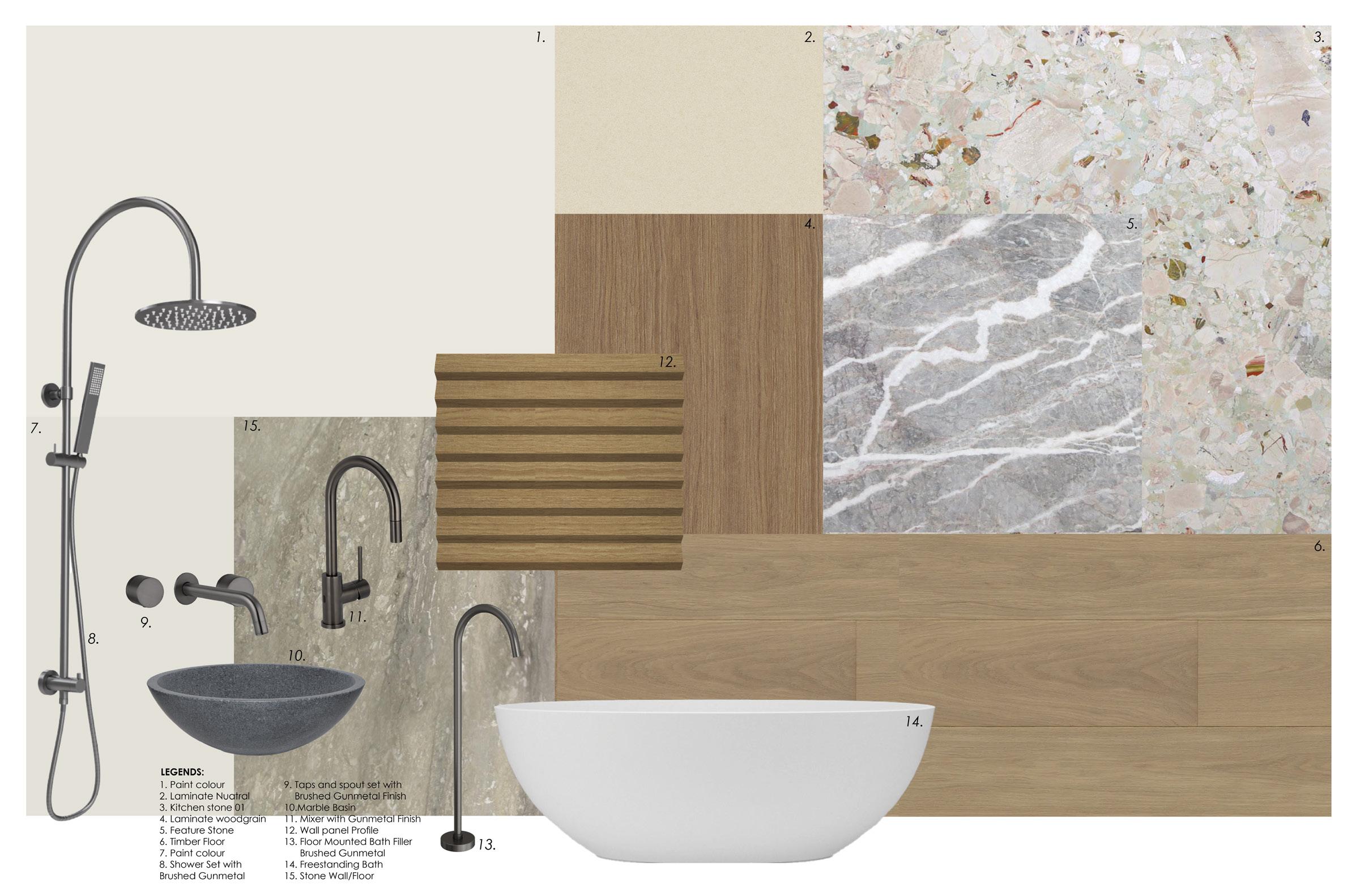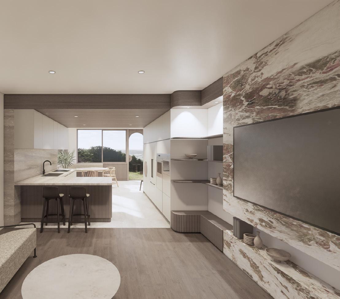 The concept design features a modern, open-plan layout that maximises the use of natural light from the north. The aim is to create a stylish and functional interior that exudes a cosy atmosphere throughout the space. The materials and finishes have a soft-edged, muted colour scheme and include curated sustainable natural products. The dynamic and minimalistic design creates a timeless look ideal for a modern, uncluttered aesthetic lifestyle.
