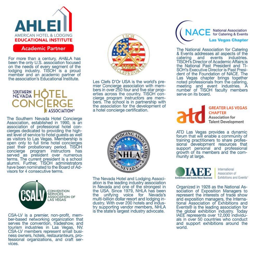 TISOH is very active and maintains leadership positions in the hospitality industry, especially with many national and global professional organizations. This helps us to achieve our mission of teaching current and relevant knowledge and skills. These organizations also benefit our students and alumni by providing networking opportunities while enhancing the reputation of the school.