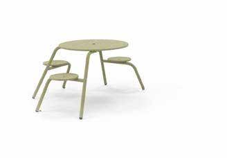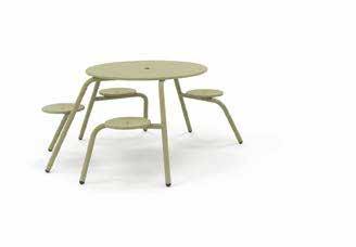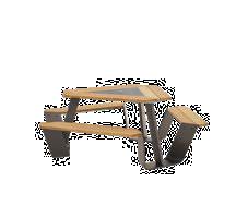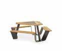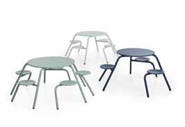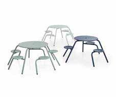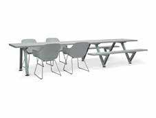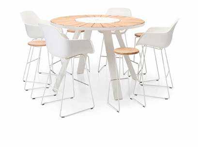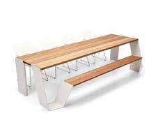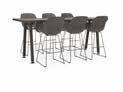 アバクスはハイテーブルとパイプスツールの一体型アウトドア家具。立っている間、6本のパイプのい