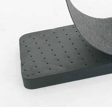 天然ゴムは通常薄い肌色をしていますが、硬化させる前にカーボン、シリカもしくはカーボンチョークを 与えることでブラックに着色しています。カーボンチョークは床に跡を残すことがありますが、簡単に落 とせます。