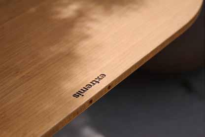 extremisで使用している竹は、高温高圧で圧縮する加工を施すことで、非常に硬く優れた耐久 性を持っています。汚れや気候による影響などから保護するために、ウッドオイルで処理され ています。