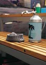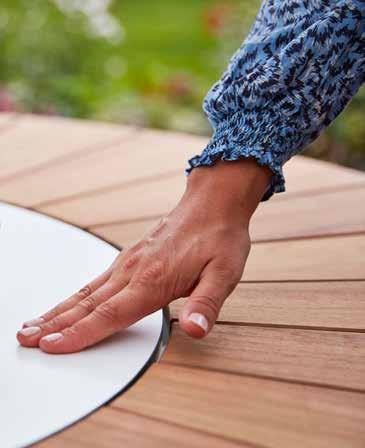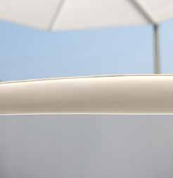 ホワイトのグラスファイバーを使ったテーブルトップやベンチは定期的なお手入れを前提にお選び下さ い。UVレイヤーを傷つけないように強い洗浄剤や研磨剤の入った洗剤は使用しないで下さい。グラスフ ァイバーの繊維が表面に付く可能性があるので、設置の際は手袋を使用するか、事前に清掃をして下さ い。木の葉やほこり、大気汚染などによって表面に跡が付く可能性があるので、設置場所にはご配慮下さい。