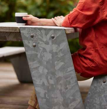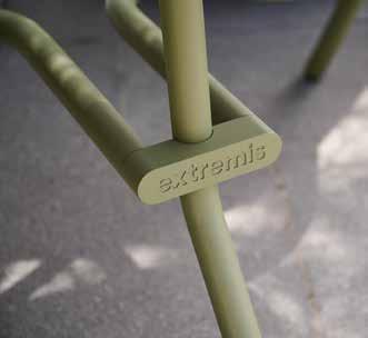 スチールは鉄に炭素などを混ぜた合金で、引張力が高いため多くの建造物で使用されており、extremisの 家具のベース材にも用いられています。ただし、酸素に触れると錆びてしまうため、extremisでは、空気と の接触を断つ亜鉛メッキ、クロムを加えることで薄い皮膜を作り耐候性を高めたステンレス、錆びを仕上 げとして用いた耐候性鋼を使用しています。