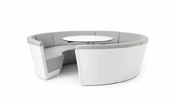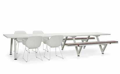 ホワイトのグラスファイバーを使ったテーブルトップやベンチは定期的なお手入れを前提にお選びくだ さい。水拭きをするだけで汚れが簡単に落ちます。頑固な汚れの場合はメラミンスポンジを使用するこ とで落とすことができます。