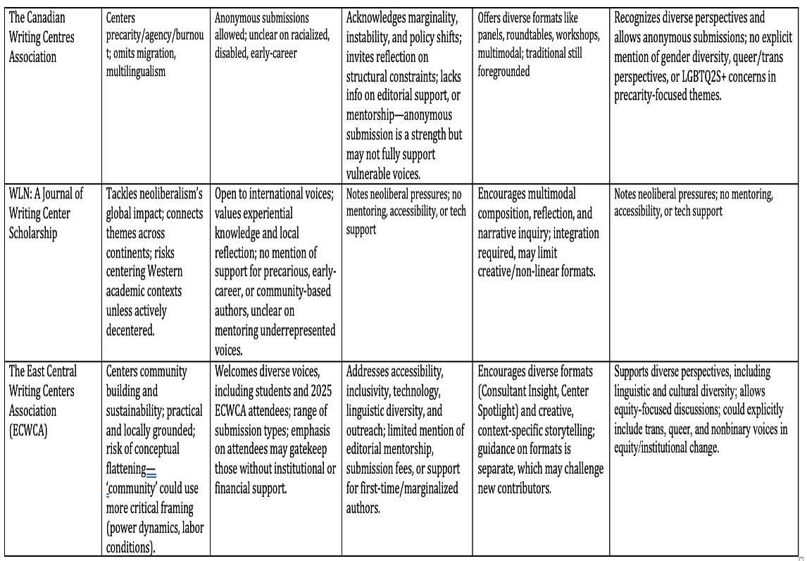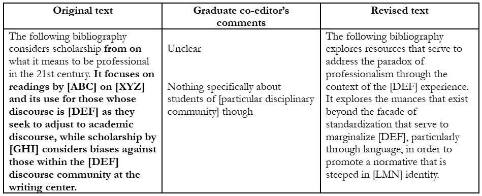 3 Experience giving feedback on submissions to writing center journals