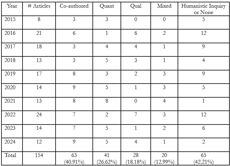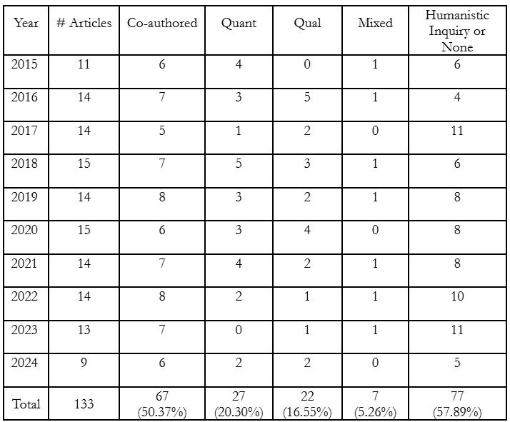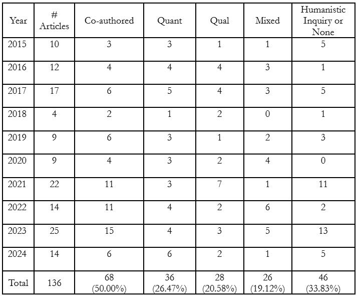 As an early career pre-tenure professor having now successfully co-authored with fifteen undergraduate students, I am glad that the project was ultimately worth the stress and time commitment. Students were also glad to finally be able to read the article and see their experiences be published. I would encourage faculty to pursue co-authoring opportunities, but would encourage people to be aware of some of the struggles of the process.
