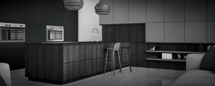 Trendy dark finish that reduces the prominence of hardware in cabinets.