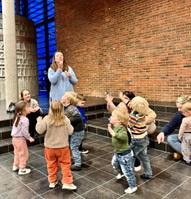 Menighetspedagog, kantor og sokneprest inviterer til månedlige barnehagegudstjenester der Solborg barnehage og Hakkebakkeskogen barnehage deltar. Vi har også et godt samarbeid med soknets skoler om skolegudstjenester. Tjensvoll skole feiret både påske- og julegudstjeneste her, mens KF-skolen feiret påskegudstjeneste. Vi setter stor pris på det gode samarbeidet med barnehager og skoler i soknet.