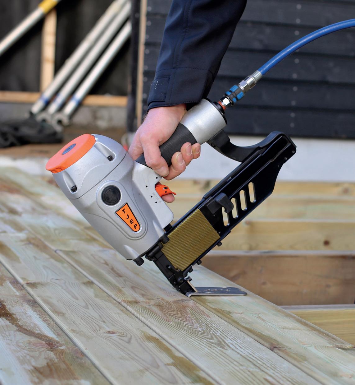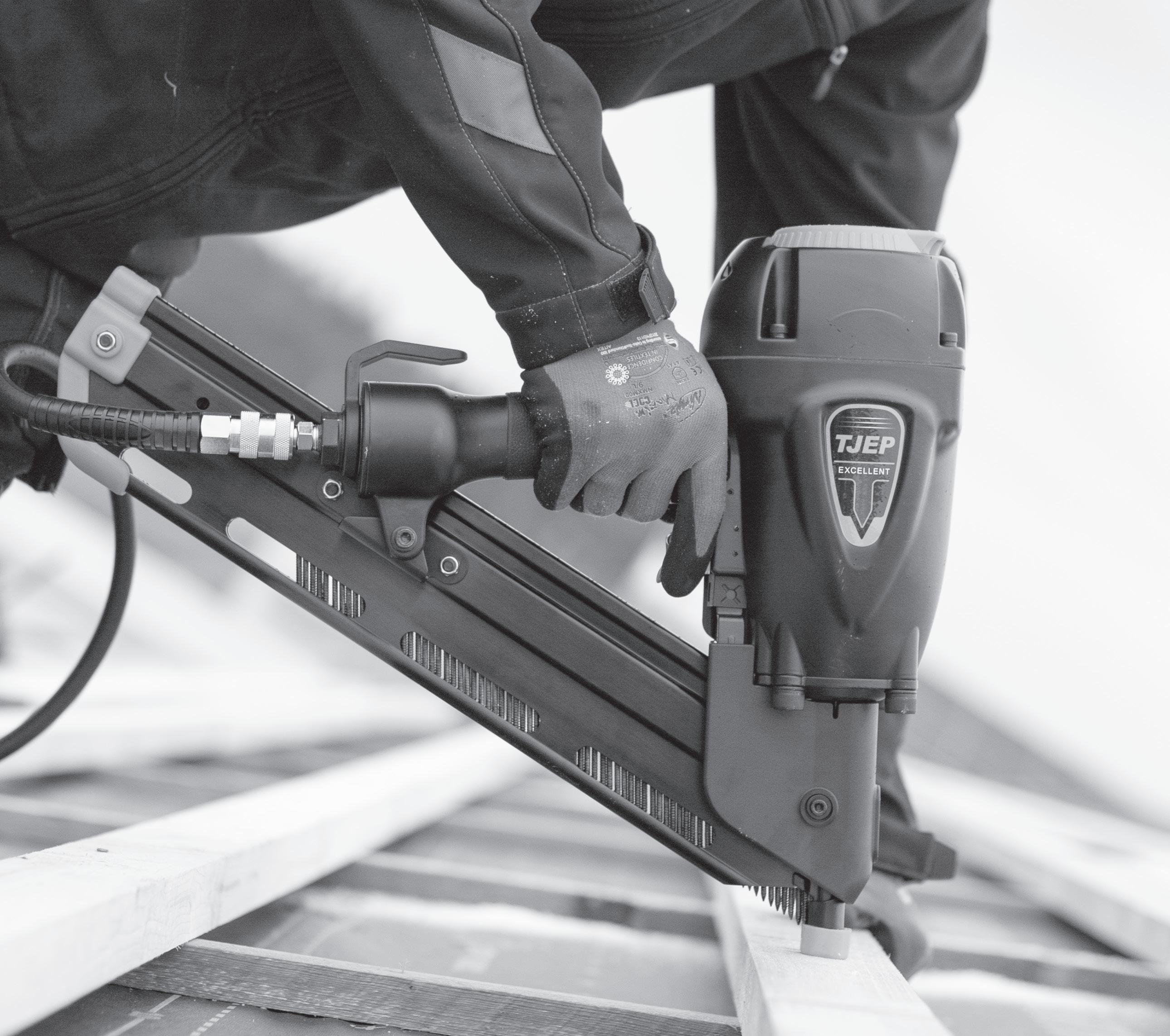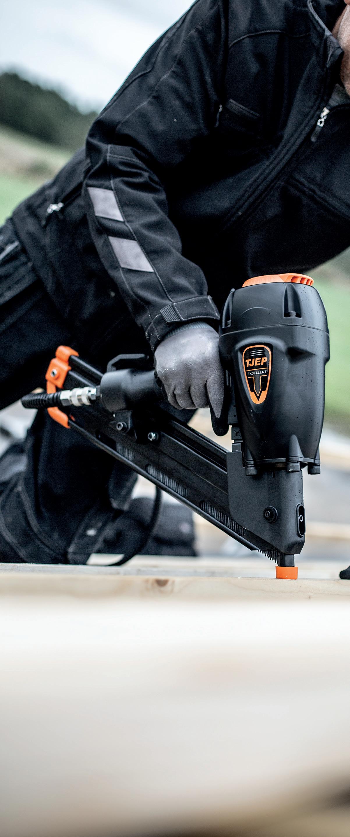 Die Marke TJEP besitzt Skandinaviens größtes Sortiment für Klammer- und Nagelprodukte sowie Bewehrungsstahlbindesysteme. Das umfangreiche TJEPProgramm für den professionellen Handwerker umfasst neben Kompressoren auch über 70 verschiedene Klammer- und Nagelgeräte, darunter Streifennagler, Coilnagler, Brads- und Stiftnagler sowie Betonnagler.