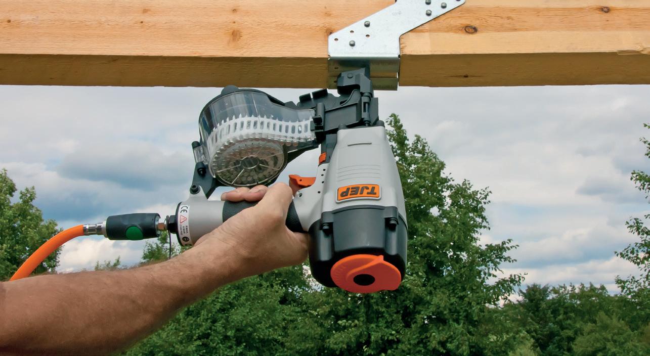 TJEP är namnet på Skandinaviens största produktprogram vad gäller utrustning för infästning. Det omfattar spikpistoler, rundbandade spikpistoler, dyckertpistoler, klammerpistoler och kompressorer för den professionella hantverkaren.