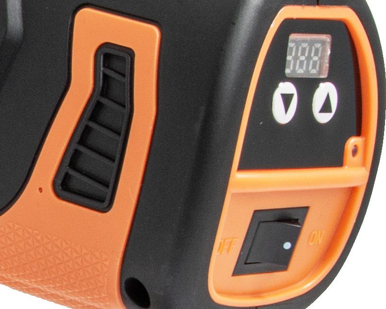 The digital control panel for easy and fast torque adjustments, while displaying number of wraps. Hold the trigger and click on the ON-button to change number of wraps.