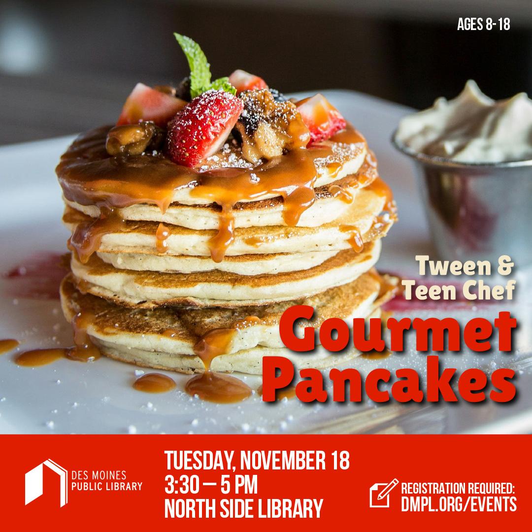 Join ourTween and Teen Chef program to sharpen your kitchen skills and create delicious dishes.This session focuses on pancakes - transform a simple box mix into a gourmet treat with a variety of mix-ins and toppings! Register to attend.