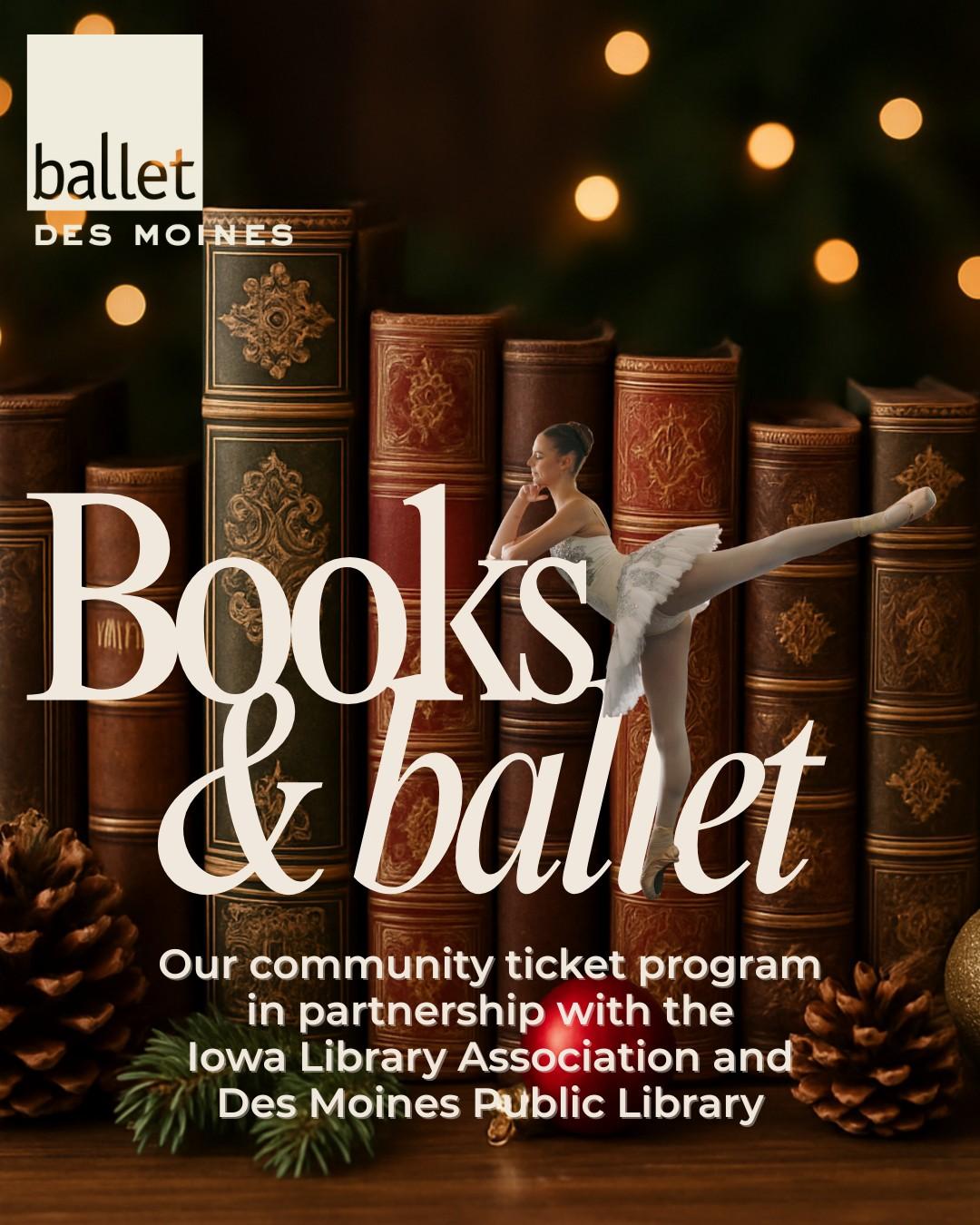 Visit the Hoyt Sherman Place Box Office or fill out a form online to reserve a free ticket to The Nutcracker These tickets are available to library cardholders as a part of the Ballet Des Moines CommunityTicketing program.