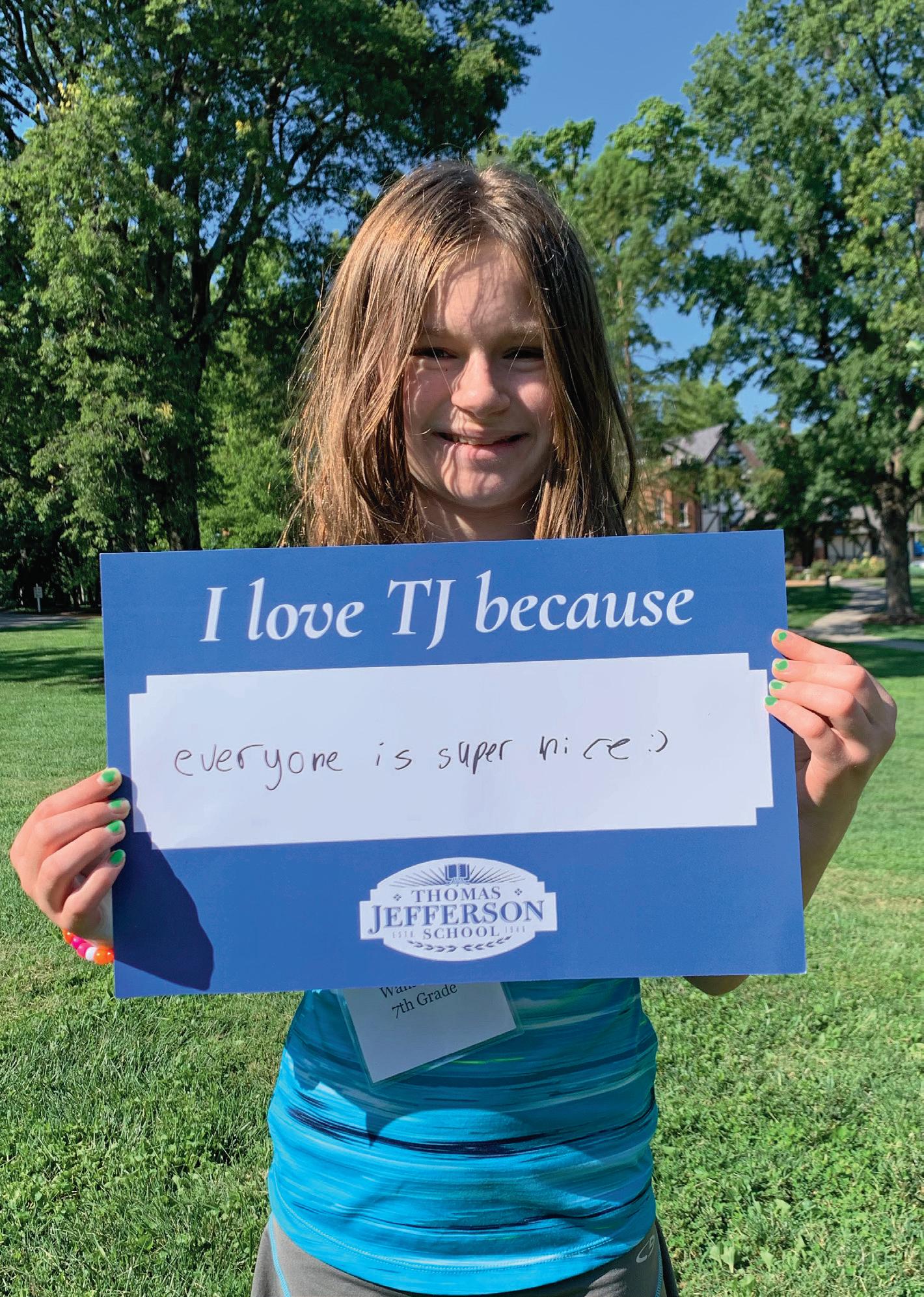Thomas Jefferson School is committed to building and sustaining a community rooted in diversity, equity, inclusion, and belonging. These values, which are central to our mission, fundamentally inform and shape student learning, achievement, and preparedness for life. Our school seeks to provide the strongest possible collegepreparatory program within an international, multicultural community. We strive to embrace multiple perspectives, encourage critical thinking, and develop and nurture courageous, empathetic individuals at all levels. A TJ education aims to provide students with resources and inspiration to better their communities.