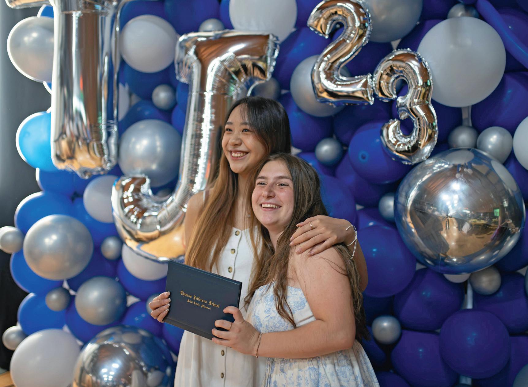 THE SUCCESS STUDENTS EXPERIENCE AT TJ IS EVIDENT IN THE COLLEGE acceptances and scholarships that they have earned, including, with the Class of 2023, two National Merit Semifinalists, multiple institutional merit scholarships, and overall financial awards amounting to more than $480k per student.