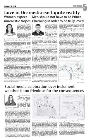 Women expect Men should not have to be Prince unrealistic tropes Charming in order to be truly loved Boy meets girl. They grow close, they get jealous and then they fight. But it takes a realization, a dramatic declaration of love, something that will cause the music to swell and the camera to pan on that big kiss. Then the movie is over. There’s no need to worry about their future because we know they’ll be in love forever. SANDY CHO Cue the credits. The end. But in reality, relationships go on after the ending credits. People break up and love fizzles. As life goes, some things are just not meant to last forever. However, due to popular novels and romantic comedies of Hollywood, love is painted in an unlikely and unrealistic light, in which people expect relationships to be heartwrenchingly passionate and last forever. And because of this, girls of the audience, in particular, are left pining away to reform their bad boys or fall into the strong arms of their Prince Charming’s. It’s important not to lose sight of the fact that your significant other should not be a stock character who has a certain look and image, but someone you actually enjoy being and talking with. There will be no clear-cut jerk with a heart of gold or the righteous hero who’s always there to save the damsel. With popular movie heroins, such as Audrey Hepburn in “Breakfast at Tiffany’s” and Natalie Portman in “Garden State,” females are portrayed as quirky and free-spirited as they bring some sort of meaning into the brooding male protagonists’ lives and drag them into whirlwind adventures. However, females are so much more complex than that. They shouldn’t be molded nicely into a trope, acting as a catalyst for some sad man’s life. Though Hollywood relieves anxiety and provides entertainment, especially for stressed out Jefferson students, it’s imperative to realize that love and relationships aren’t all what’s on the big screen. There’s more to eccentric girls and dashing dark heroes, and happily-ever-afters. According to Barbara Frederickson, a positive psychologist at the University of North Carolina at Chapel Hill, in her new book, “Love 2.0,” love is not actually an emotion that lasts forever but rather, a “micro-moment of positivity resonance,” a positive connection between people. As long as we focus on maintaining positive connections between the people we love, not just with a love interest, and be true to ourselves, it’s possible that our lives may just rival those seen in Hollywood movies.