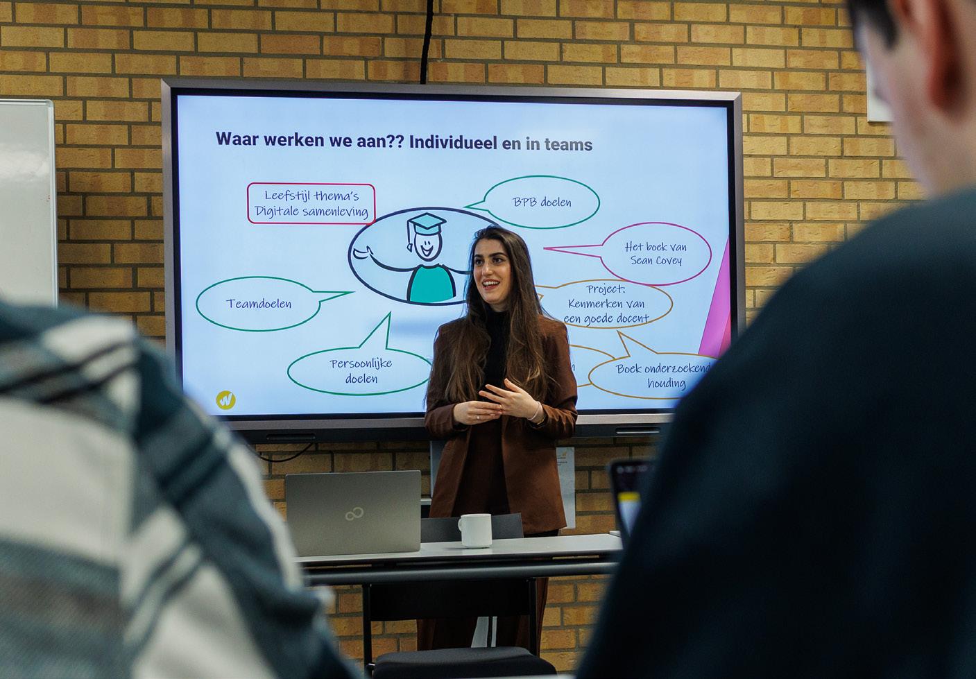 Nu ze de training zelf geeft, weet Liena hoe ze op zulke situaties kan reageren. “Dat is niet alleen belangrijk voor de sfeer in de klas, maar ook voor de studenten zelf. Zij zullen te maken krijgen met dezelfde discussies wanneer ze gaan lesgeven.” Discriminatie is een ander thema dat Liena vaak in de klas bespreekt. “Uiteindelijk gaat het erom dat je mag zijn wie je bent, dat je je veilig voelt in een groep. Daarom heb ik het vaak over diversiteit en discriminatie, wat is dat nu precies?”