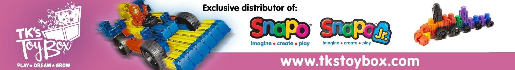 IMAGEPRODUCTNAMEITEM NUMBERAge RatingCASE SIZE PACKAGING OPTIONS FOB READING (Each) FOB READING (Case)MSRPCASES ORDEREDTOTAL AMOUNT Snapo Jr. Starter Set (24pcs) SN32-24-T1+12Clear Tube$4.00$48.00$9.99 Snapo Jr. JuniorBuilders Kit (32pcs) SN32-321+12Box$6.00$72.00$14.99 Snapo Jr. First Builders (60pcs) SN32-601+12Box$11.00$132.00$24.99 SNAPO JR. ADVANCED BUILDERS SET (80pcs) SN32-80-B1+12Vinyl Zipper Bag$15.00$180.00$34.99 Snapo Jr. (125pcs)SN32-133B1+12Bag$27.00$324.00$59.99 Snapo Jr. (250pcs)SN32-250B1+6Bag$50.00$300.00$109.99 Snapo Starter Set (100pcs)SN16-1003+24Clear Tube$4.00$96.00$9.99 Snapo Americana (150pcs) SN16-150A3+24Box$6.00$144.00$19.99 Snapo Pixels (150pcs)SN16-150P7+24Box$6.00$144.00$19.99 Snapo Americana (200pcs) SN16-200A-T3+12Clear Tube$9.00$108.00$19.99 Snapo Deluxe Builder (200pcs) SN16-200-T3+12Clear Tube$9.00$108.00$19.99 Snapo Advanced Builders (300pcs) SN16-3003+12Box$11.00$132.00$24.99 Snapo Toys 201 E.Bellevue Ave. Reading, PA19605