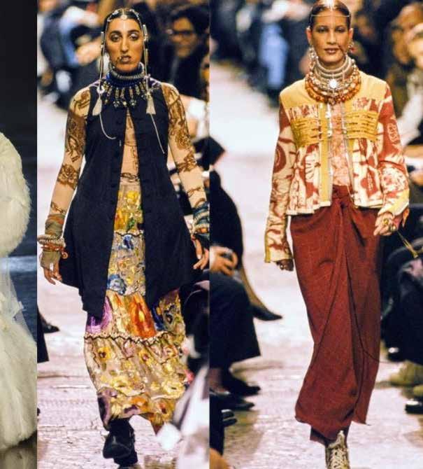 Jean Paul Gaultier’s “Les Tatouages” (SS 94), also comes to mind when discussing this connection of earthly elements and the body. The models are all wearing tribal elements; clothes adorned with images of fields, trees and bodices that mimic full body tattoos in addition, headpieces and piercings. These tattoos mapped across the body and corsetry stitched like veins transcend fashion and almost serve as protective elements, most of them rooted from the earth. In the Balkan region, predominantly women donned Sicjane tattoos, for protection but also cultural identity. Usually bracelet-like designs were sometimes tattooed around the women’s wrists, either with crosses or a fence-like motif, an element seen also in JPG’s runways.