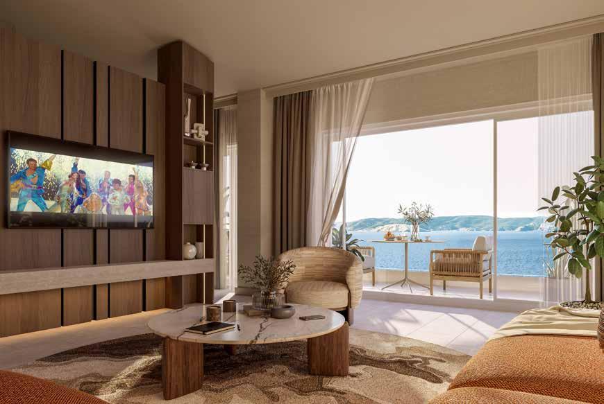 Thoughtfully designed architecture gives Mövenpick Hotel & Residences Kvarner Bay its distinct character, a collection of oneand two-bedroom residences and select penthouses, each created to capture the light, views, and atmosphere of the Adriatic. Prices start from €338,500, offering a rare opportunity to own a home that blends timeless design with word-class hospitality. Each residence is designed as a private sanctuary, so that from the moment you arrive, the atmosphere invites you to surrender to the Mediterranean pace. The interiors, conceived by the awardwinning studio Atellior, feature high-quality natural materials, soft tones, and timeless design elements that echo the landscape outside. Bespoke furniture and generous terraces create a seamless flow between indoor comfort and the open rhythm of life by the sea.