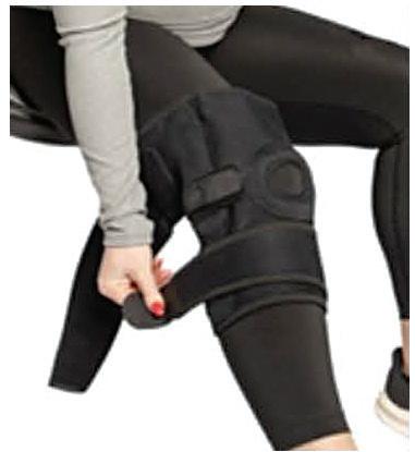 Step 1. Unfasten all Velcro straps and apply seated with the knee bent. Position the patella pad on the knee cap and align the hinges with the center of the knee joint.