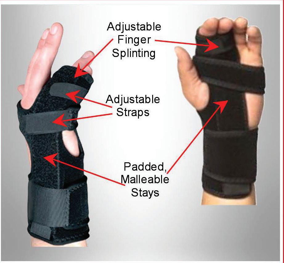 • One splint acts as a Boxer’s Fracture Splint, Radial Gutter Splint, and Middle/Ring Finger Splint.