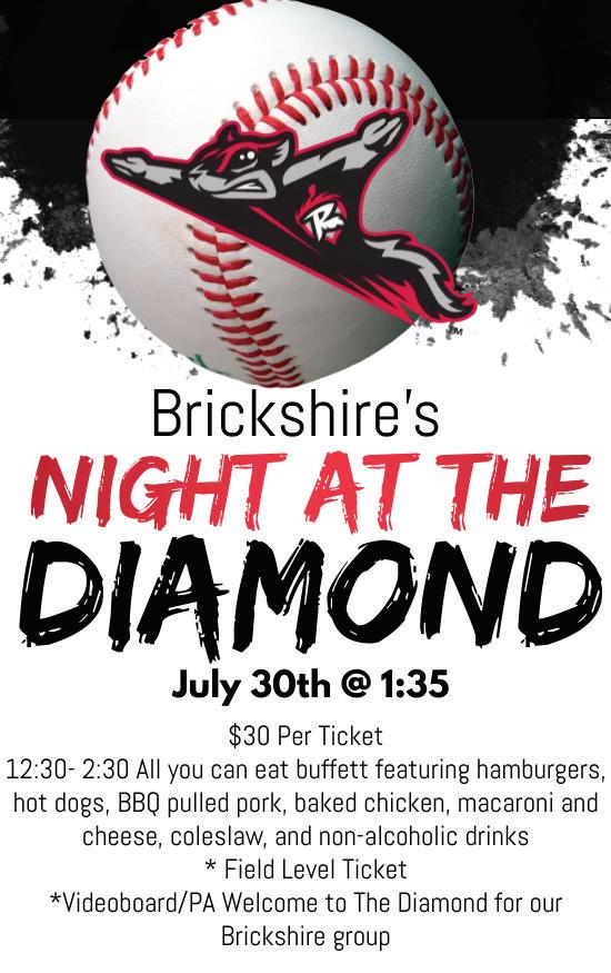Brickshire Night at the Flying Squirrels baseball game is on Sunday, July 30th at 1:35pm. Discounted tickets, which include a field level seat and buffet, are $30 per ticket. Transportation not provided. See more details in the Children’s Committee report. Please send any questions regarding this event to Lauren Paone at LaurenPaone@aol.com.