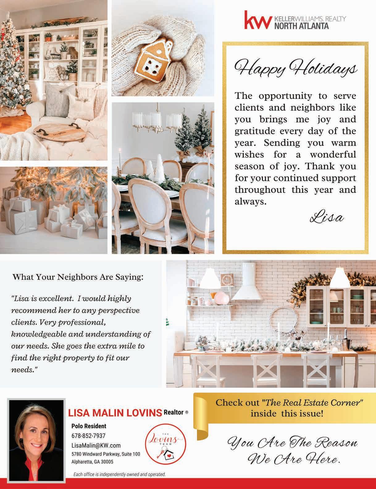 Polo Golf & Country Club // www.polohoa.com 3 The Polo Newsletter is a publication of Our Front Porch. Subject matter published is the opinion of the author and does not necessarily reflect the opinion of the publisher of this newsletter. Professional advice should be obtained before making any decision in which a professional is readily available. Advertisers assume responsibility for the content of the ads placed in this publication. Material published may not be reproduced without the written permission of Our Front Porch. The contents of this newsletter are provided for the members of the Polo Golf & Country Club neighborhood as a courtesy only. No representations are made as to information presented, the quality of the goods or services advertised, or the veracity of the statements relating to the goods and services. The printing of opinions, information or advertisements does not constitute an endorsement by the neighborhood of such opinions, information, goods or services. CONTACT US TODAY • 770-623-6220 • info@frontporchatlanta.com ** POLO GOLF & CC FACEBOOK PAGE ** The Facebook page "Polo Golf and Country Club Homeowners" is maintained by a private individual and does not reflect the views of the Polo Homeowners Association Board . If you would like to contact the HOA Board of Polo Homeowners Association please do so on our website www.PoloHOA.com Want to submit something for the newsletter? It's easier than ever… Email lisa@polohoaboard.com to be added to the contributor list! Submit by the 20th, and your submittal will be in the coming newsletter, printed in the 1st week of the next month (only 10-day lead time