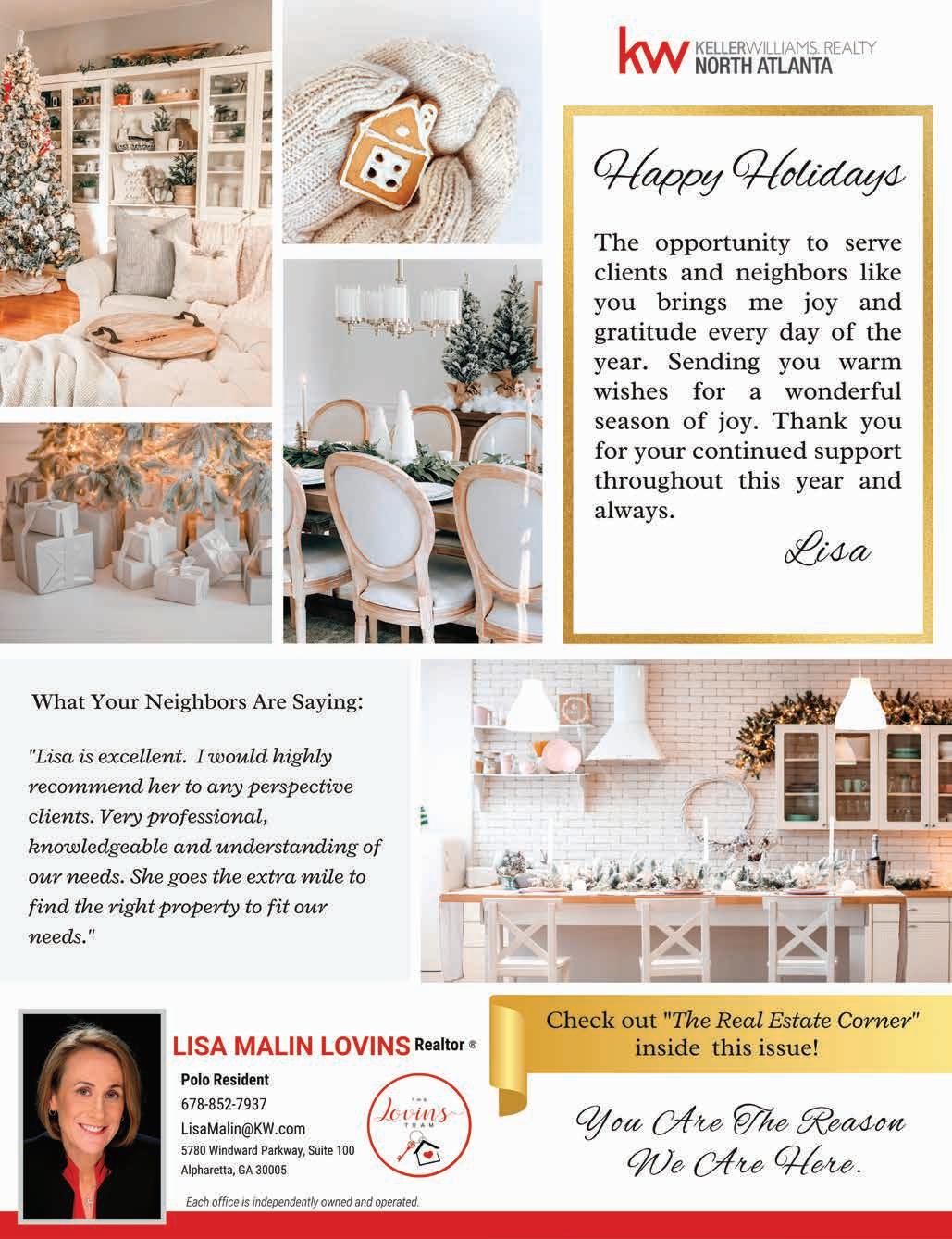 THE OFFICIAL NEWSLETTER OF THE POLO GOLF AND COUNTRY CLUB HOMEOWNERS' ASSOCIATION ONLINE newsletter! bit.ly/poloAugust2023 AUGUST 2023 POLO CLASSIFIEDS page 16 GOLF SEASON page 10 REAL ESTATE CORNER page 18 August Highlights ADVERTISE IN LOCAL COMMUNITY NEWSLETTERS! (770)623-6220 | info@frontporchatlanta.com
