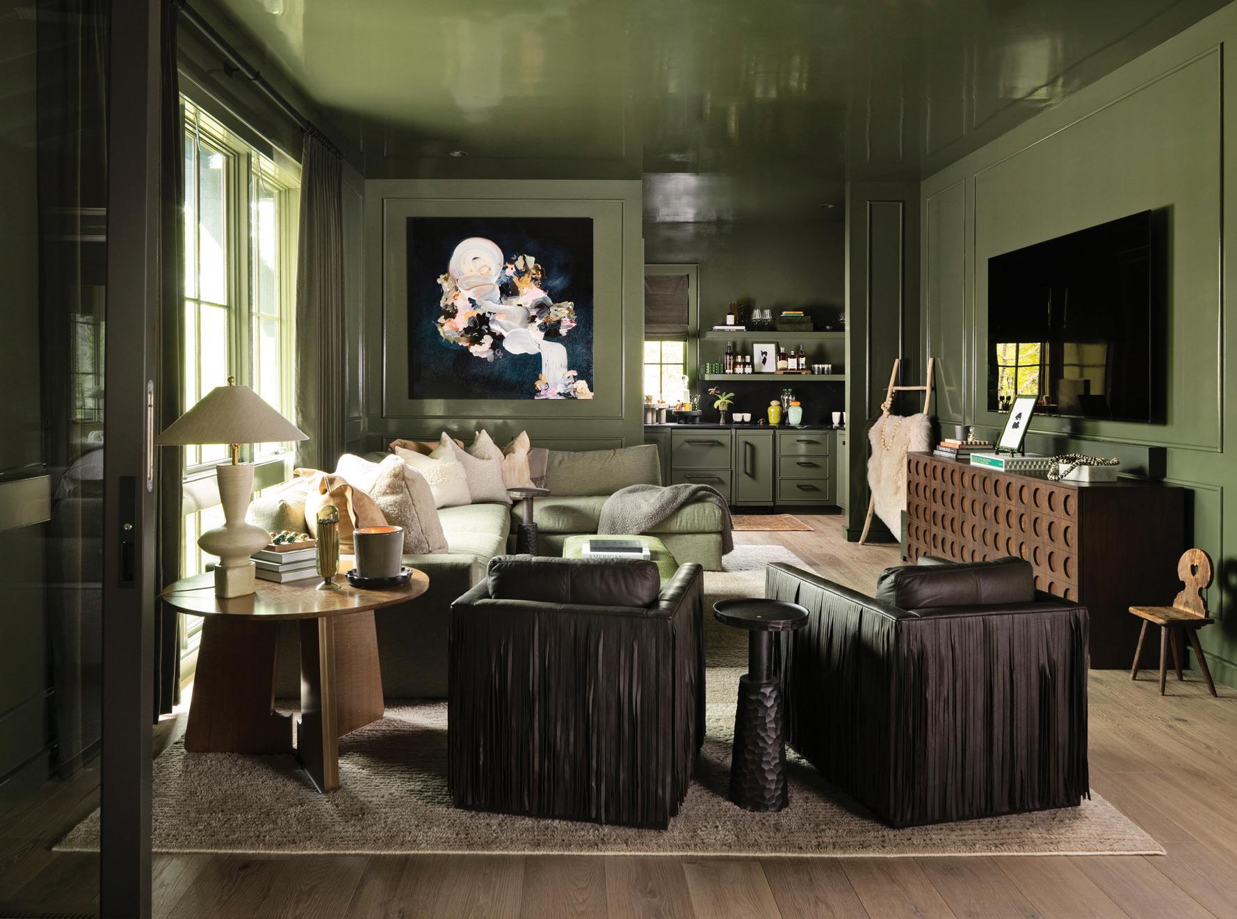 Another individualized touch: a rich green color palette in the main living space to complement the home's mountain setting.